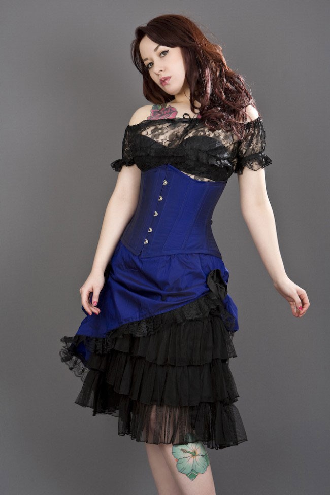 Ruched Taffeta Skirt with a Mesh Ruffle Underlay 8002 Purple