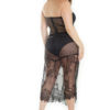 Beautiful eyelash lace gown features lightly padded shelf cups. Zipper back and detachable straps. Includes high waisted full back panties. Great for layering!