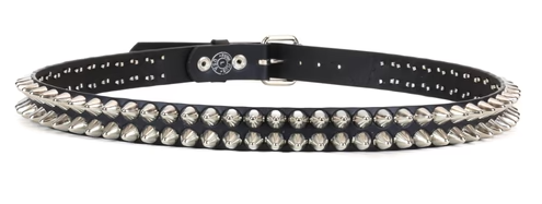 Leather 2-row tall cone stud stud belt. UK77 studs. 1-1/4″ wide. Adjustable buckle. Interchangeable buckle.