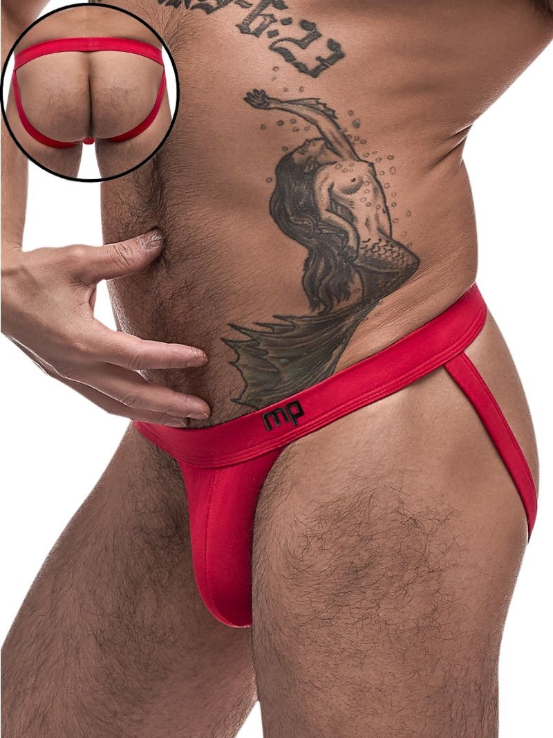 Classic jockstrap features a suppotive enhancing pouch, a no-roll waistband and thick elastic straps wrapped over the open rear.