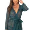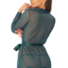 Mesh robe with eyelash lace trim. Includes a matching g-string.