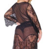 Mesh robe features scalloped Chantilly lace insets, 3/4 length bell sleeves, an inner tie and a removable belt. Perfect to wear around the house or for a boudoir photo shoot.