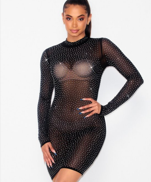 Sheer Mesh Dress with Sparkling Rhinestones 65013 Black