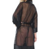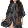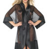 Sheer robe features satin trim and a removable belt. One size, but it has a generous fit and will fit most sizes.