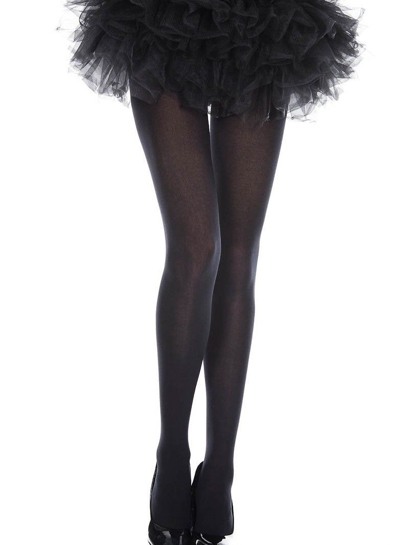 Opaque tights can be worn on their own, or layered with fishnets for a unique look.