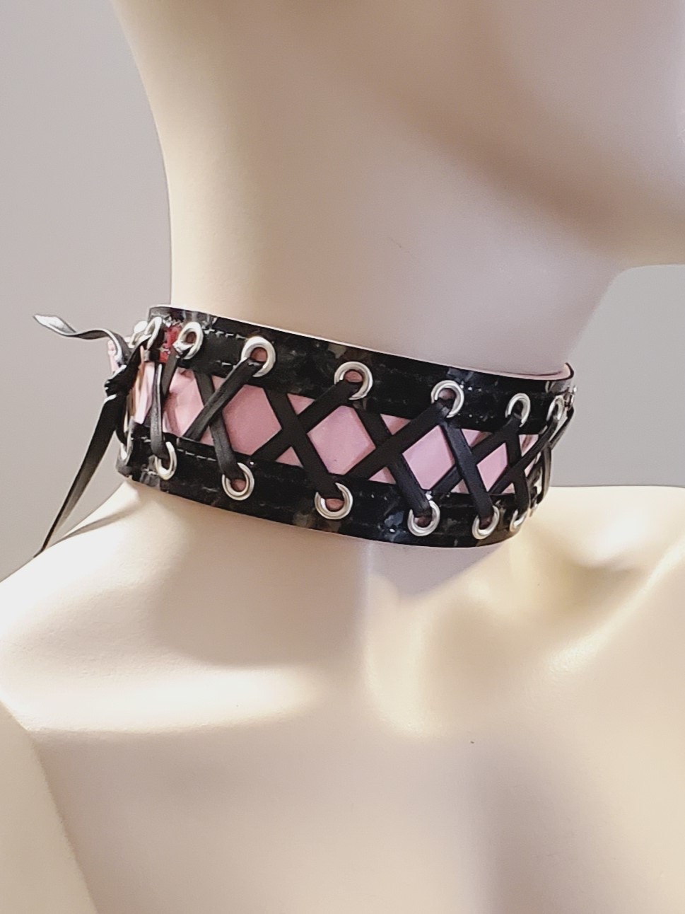 Vegan Leather Corset Lacing Collar 24480 Black/Pink