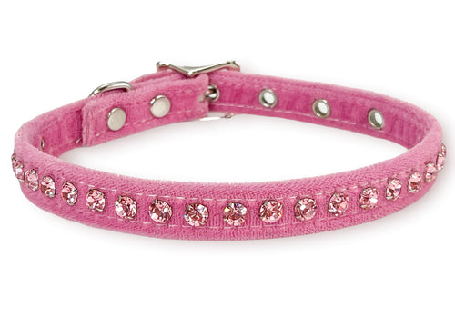 Velvet collar features Apinkrhinestones and an adjustable back buckle. One size.